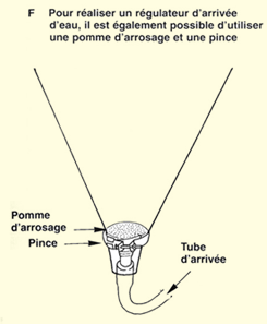 Note: Au lieu d'un régulateur d'eau à double entonnoir, vous pouvez également utiliser une pomme d'arrosoir suivant les indications relatives au type d'incubateur précédent