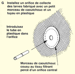 (h) Ajoutez l'orifice de collecte des larves (particulièrement important dans le cas d'oeufs flottants):