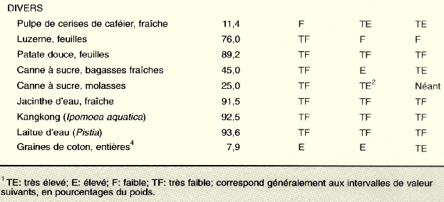 La valeur estimée du quotient nutritif des aliments de complément disponibles est 6:1. Dans le cas ci-dessus, une production de 200 à 300 kg exigera (200 à 300 kg) x 6 = 1200 à 1800 kg d'aliments de complément.