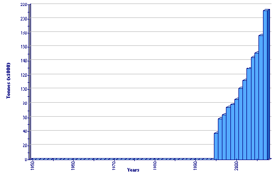 Preferably, tank size is 4 x 6 x 0.8 m and the stocking rate is 7 000/m³. Branches are placed on the bottom of the tank to provide shelter for feeding activities.
