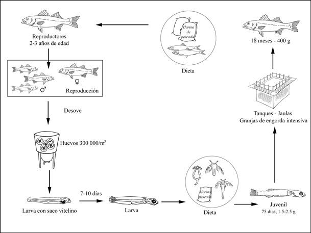 En la producción intensiva, las unidades de engorda son suministradas con alevines de criadero a los que se les provee una dieta controlada.