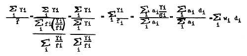 Kutkuhn (1962) mentioned that if it is assumed that the biomass as manifested by the ratio of catch to effort (di) was constant within each of the i sub-sub-areas throughout the period indicated, then the best index of overall population biomass is the weighted mean catch-effort ratio for each sub-sub-area. Hence, the areal weighting factor (wi), is the proportion of the total occupied area represented by the ith sub-sub-area. The concepts of Gulland (1955, 1956), Beverton and Holt (1957), as given by Kutkuhn (1962) is shown in the notation: