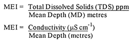It has been established that the mineral content of the water expressed as total dissolved solids (or alkalinity or conductivity) can be used as a rough indicator of the edaphic conditions which play a fundamental role in determining the biological productivity of reservoirs or lakes. Ryder's (1965) Morpho-Edaphic Index (MEI) has been found very useful in predicting fish yield both in temperate and tropical lakes. The index is expressed as: