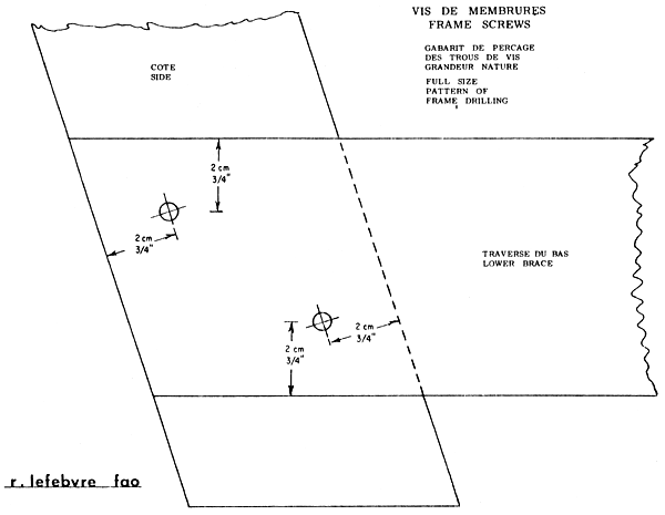 | Fig.74 Avec une fraise ou un gros foret, fraiser ces trous pour y recevoir la tête de vis Fig. 74 With a countersink bit or large drilling bit enlarge the holes to lodge the screw heads |