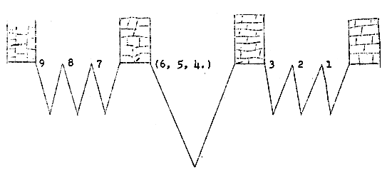 The experimental net (Hamen) was chosen for the first set of experiments and it was put into one of the best fishing opes of the bridge to replace standard nets Nos. 4, 5 and 6 as shown in sketch.
