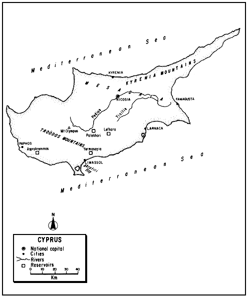 The Republic of Cyprus, lying in the extreme northeastern corner of the Mediterranean Sea, is its third largest island. Two-thirds mountainous and one-third plain, with a narrow coastal fringe, it is primarily an agricultural land. Intensely Mediterranean in climate, this water-deficient country lacks freshwater lakes and few of its streams are perennial. Most of its freshwater resources lie in irrigation reservoirs.