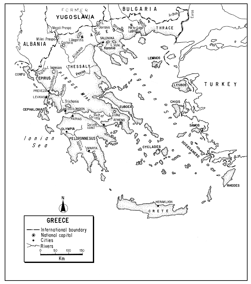 Source: Hellenic Republic, National Statistical Service of Greece (1988) after Hellenic Military Geographical Service (lake areas rounded)