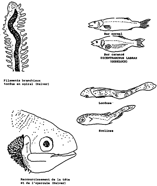 As this report concerns fish let us ask ourselves the questions: do the requirements in vitamins and minerals for fish differ from those living in an atmospheric environment? If, on general, the biological functions are same, the specific symptoms are different for fish, with regard to their anatomic and physiological particularities. Gills instead of lungs for example; which means that abnormalities of the gill organs in relations to certain deficiencies may be remarked.