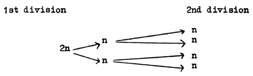It has been established now that all the cells of multi-cellular organisms, with the exception of generative ones, contain an identical set of chromosomes (Figs.1a and 1b). As a rule, generative cells (sexual) bear half as many chromosomes as the somatic cells. Somatic cells are reproduced by duplication which is called mitosis or karyokinesis, while generative cells originate by meiotic division or meiosis.