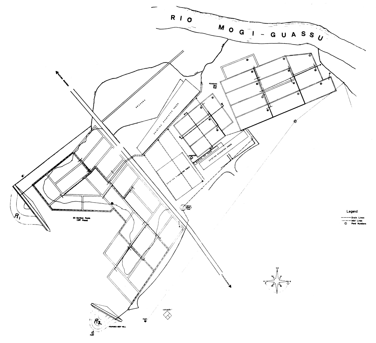 Figure 2 The proposed lay-out of experimental ponds at Pirassununga
