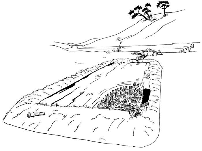 M'tatsiliza kuikamo madzi, bvalani m'gelo ongenetsa madzi kuti madzi aleke kulowa m'ngachite ici poikapo mwala pulanga kapena ku unjika dothi pamene polowela madzi.