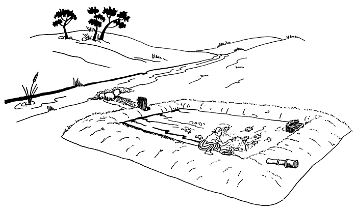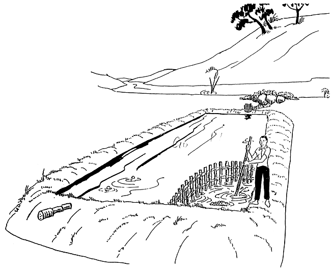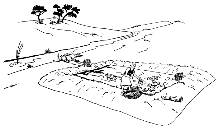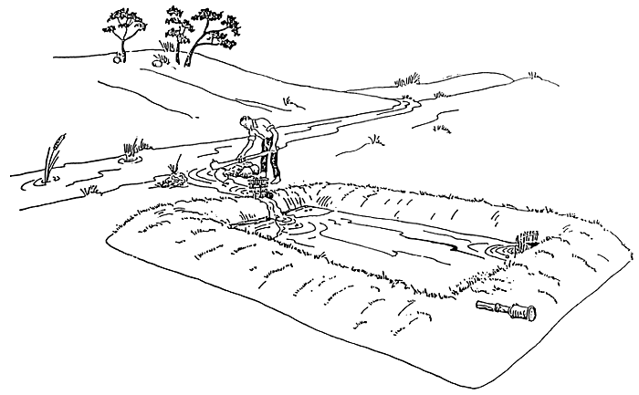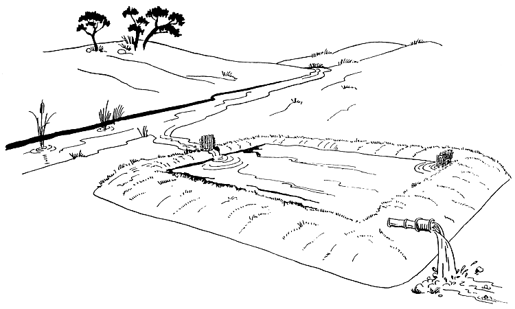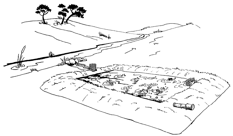 If you have been tapping water from a stream, change some of the water in your pond for several days. The pictures will show you how to do this.