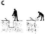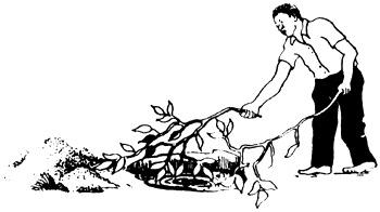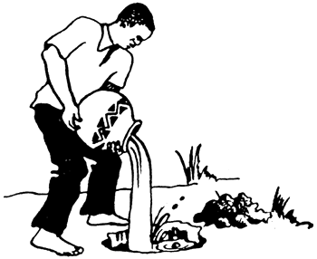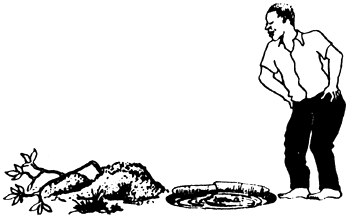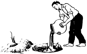 | By the evening some of the water will have sunk into the soil. Then fill the hole again with water. Cover the hole with leafy branches. | ![]() | |