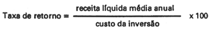 A simples taxa de retorno expressa o retorno líquido médio anual como percentagem da inversão. A receita líquida se encontra diminuindo a depreciação média anual da receita média líquida em dinheiro. Isto se calcula como:
