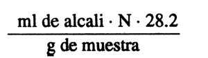| Acidos grasos libres | Cantidad de muestra (g) | Concentración de alcali (N) |