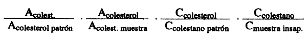 La técnica se basa en la utilización de un estándar interno 5-α-colestano (solución de 0.4 mg/ml) en heptano y de colesterol (solución de 1.2 mg/ml) en NN dimetilformamida.