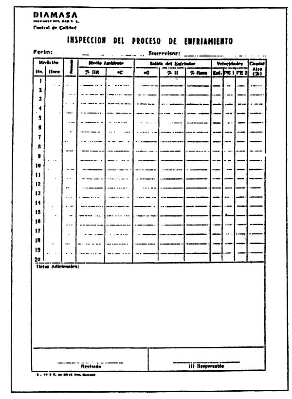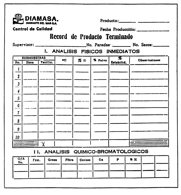 Los Anexos 15.3. y 4. corresponden a dos controles de proceso de una importante industria de alimentos para acuacultura del Ecuador. La idea es que las consideren como referencias o guías, sin que esto quiera decir que pueden ser aplicables en sus lugares de trabajo; lo que importa es el concepto que hayan tomado de la importancia de los controles de calidad de cada una de las fases de la producción de alimentos; conseguido esto, podrán adaptar y/o implementar los controles ajustados a su realidad.