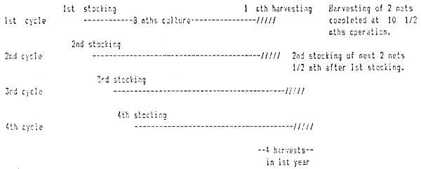 Numerals of 1 culture cycle represent 2 netcages in use.