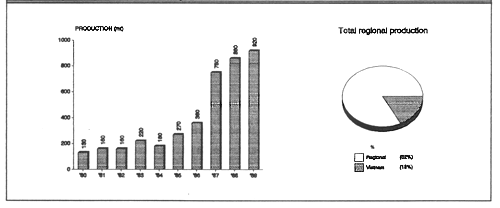| Production area | 350 ha (10,000 ha: potential area) |