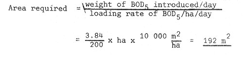 At a constant loading of 200 kg of BOD5/ha/day (the reduction of the loading from 224 to 200 kg of BOD5/ha/day involves a 10% safety factor, so that if the loading is increased then the pond will not go anaerobic because it is being operated with a loading less than the maximum).