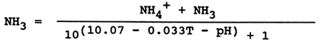 Table 8 : Dependence of NH3 content (as % of total ammonia) on water pH and temperature