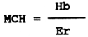 Mean corpuscular haemoglobin expresses the average haemoglobin concentration in individual erythrocytes and is given in picogrammes - pg (10-12 g). It is calculated from the haemoglobin value in g.1-1 and from the erythrocyte count (Er) in T.1-1 according to the following formula: