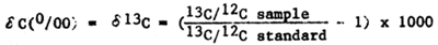 The standard is Pee Dee Belemnite (PDB carbonate (Craig, 1957).