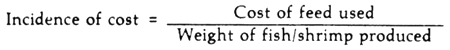 P = Q/H, where the average feed cost shows the cost of feed per kg of shrimp produced. In order to compute for average feed cost: