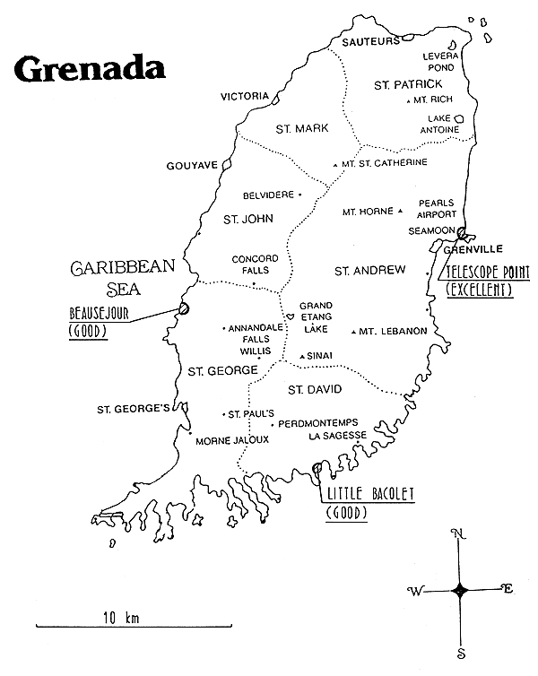 In Grenada : most of the large protected bays from Grand Bacolet Bay (East coast) to Hardy bay (south coast) appear suitable for seamoss culture. On the south west-coast Morne Rouge Bay should also be suitable. However, the bays with relatively large rivers should be avoided.