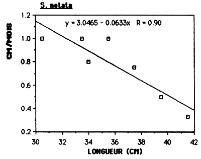Même avec cette correction, il est probable que les résultats deviennent progressive ment inutilisables lorsqu'on approchera de la taille asymptotique des poissons. Cela ren impératif de tracer un diagramme de dispersion des valeurs Loge N/Δt, afin d'identifier correctement la partie de la courbe de structures d'âges des prises qui peut être utilisé pour estimer Z.