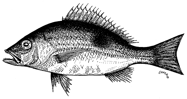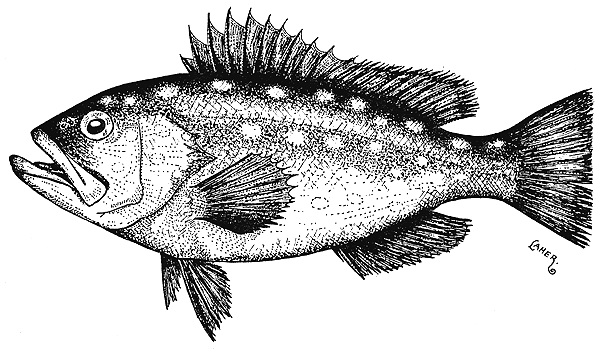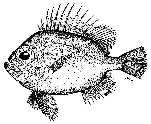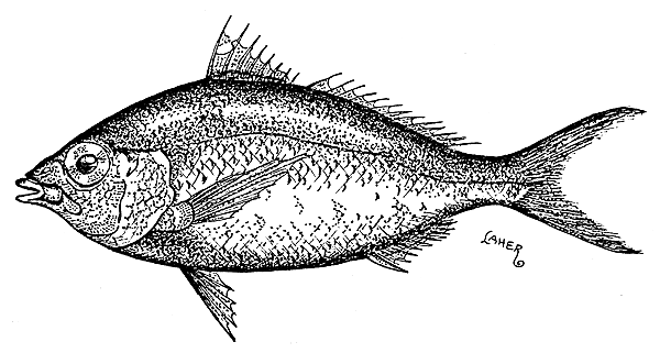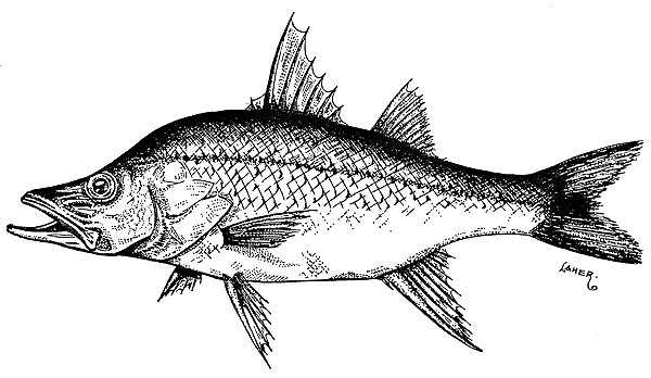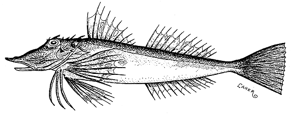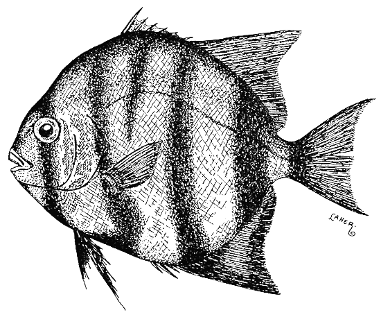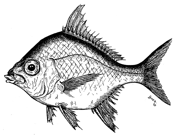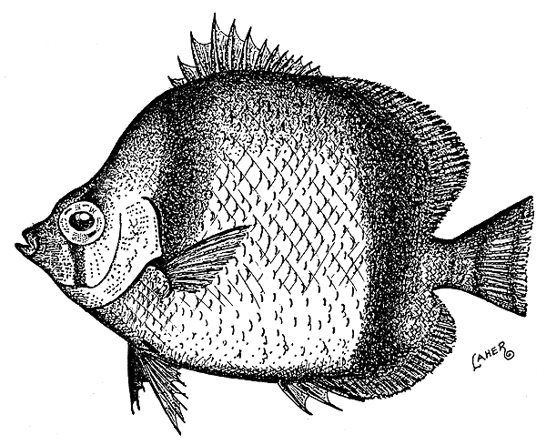 Los dibujos se publican tales como fueron entregados a la Experta - Asociada con fines de identificación. Si la Dirección Técnica de Pesca y Acuicultura quiere publicarlos en forma de folleto de divulgación, algunos dibujos tendrán que ser corregidos, ya que el Artista desconocía la importancia que representa para el taxonomista el número exacto de espinas y rayos, especialmente en las aletas dorsales y anales. Además, en algunos casos, no se dio cuenta que los animales estaban dañados y/o carecían de alguna aleta o espina.
