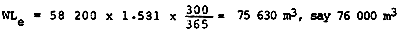 As indicated in paragraph 3.4.4, the mean annual evaporation in Aiyura is 1 581 mm taking into account that the soils found at the site have high a clay content, and, therefore, the seepage can be assumed to be 2–3 mm/day. Hence the total annual water losses in the ponds and the reservoir are: