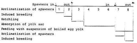 Time needed in the hatchery for spawners for the duration of one batch of hatchlings