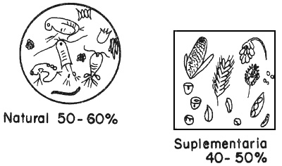 La primera comida de los pequeños peces la constituyen los rotíferos y pequeños crustáceos.