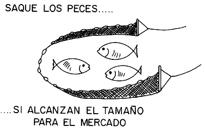 Cuando los peces ya han alcanzado el tamaño comercial no hay razón para titubear o esperar. El estanque debe cosecharse y los peces tienen que venderse. Si no se hace ésto se pierde tiempo, los peces pierden peso y el riesgo de sufrir pérdidas es cada vez mayor. Por lo tanto, para qué arriesgar las utilidades?