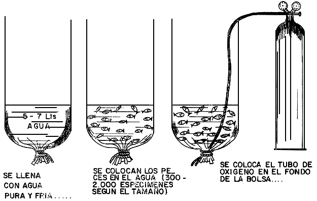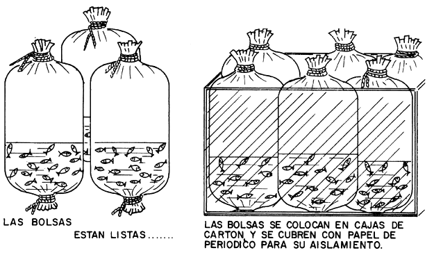 TRANSPORTE DE PECES PEQUEÑOS (hasta 5–10g) EN BOLSAS PLASTICAS.