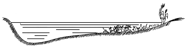 Un estanque más grande tiene que tener su fosa de cosecha donde se acumulan los peces cuando se drena el estanque.