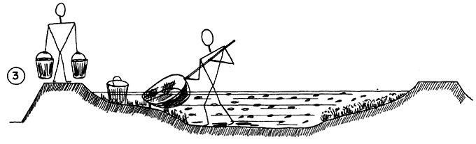 AL CABO DE UNOS DIAS SE COLOCAN MONTONES DE ABONO A LO LARGO DE LAS ORILLAS DEL ESTANQUE….