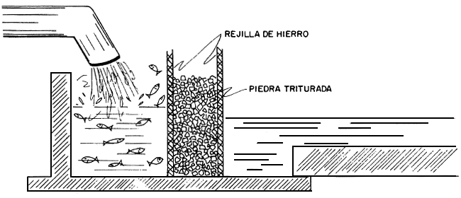 EL “FILTRO DE PIEDRA TRITURADA” IMPIDE LA ENTRADA DE LOS PECES NOCIVOS E INDESEABLES DE AGUAS NATURALES EN EL SISTEMA DE SUMINISTRO DE AGUA DE LA GRANJA PISCICOLA.