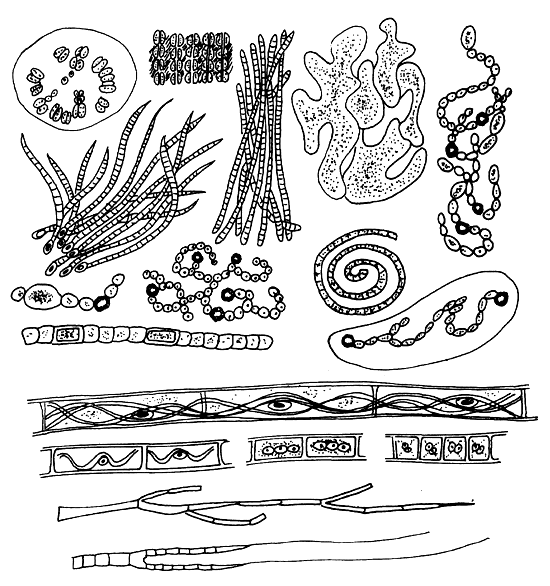 En la mayoría de los casos las algas azul verdes y las filamentosas no son productos tan buenos de las materias orgánicas como las algas pequeñas antes mencionadas.