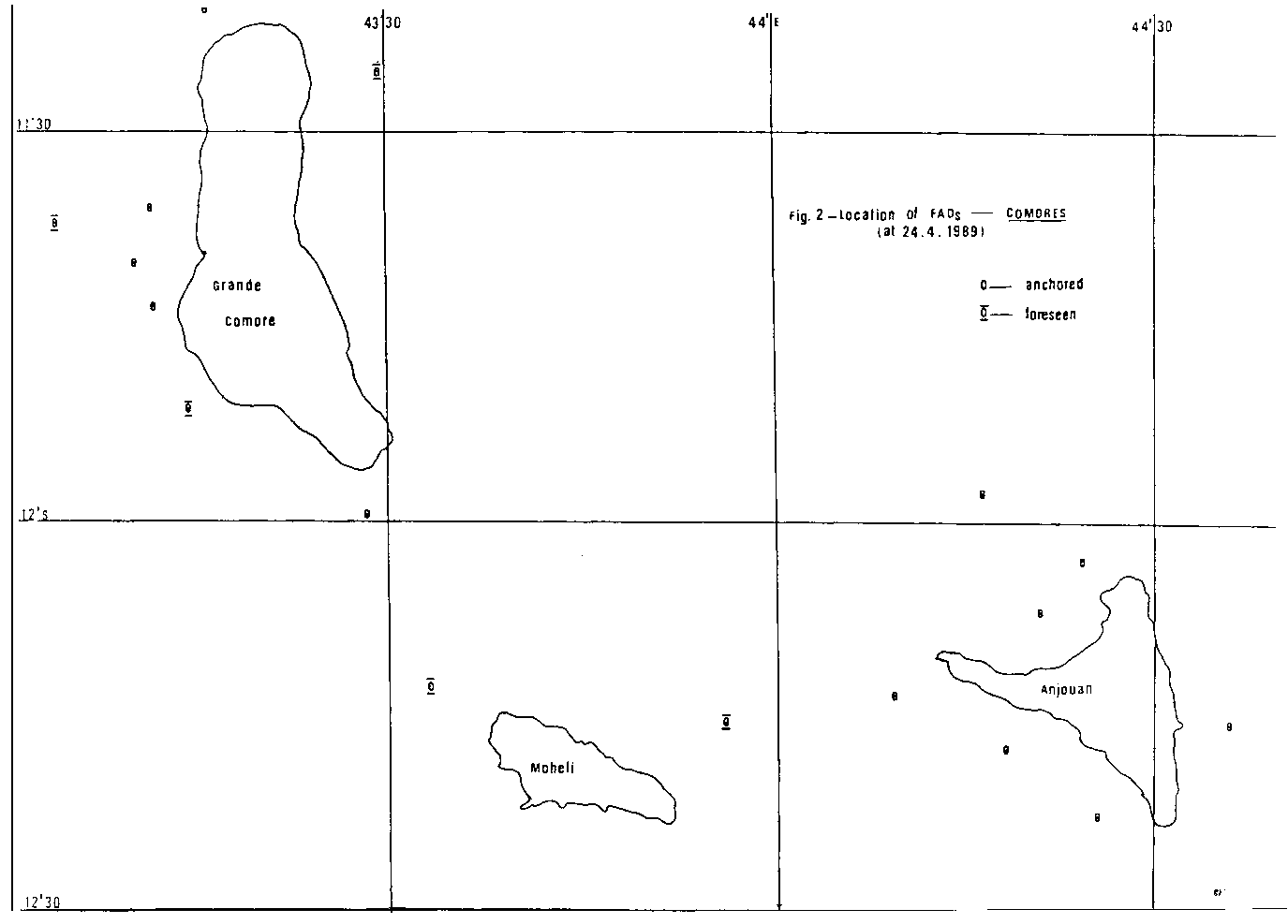 Fig. 2 - Location of FADs - COMORES (at 24.4.1989)