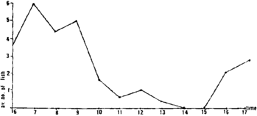 Fig. 5 - Fluctuation of catch according to time of the day trolling after ROULLOT et al. (1989)