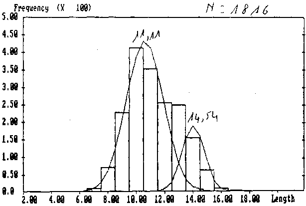 Cependant, les résultats obtenus selon ce modèle dépendent de l'interprétation faite de la courbe des captures. En effet, nous avons retenus l'hypothèse d'une migration comme explication des deux pentes observées.