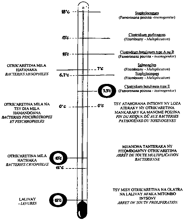 4. Asan'ny hafanana amin'ny fitombon'ny otrik'aretina na ny poizina avoakany ka manimba ny sakafo - 4. Action de la température sur le développement ou la toxinogénèse des micro-organismes de contamination des denrées alimentaires