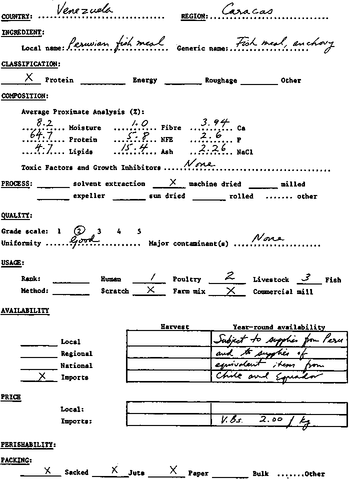 CHECKLIST FOR FEED INGREDIENT SURVEY