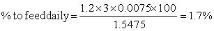 Applying the formula, the amount of feed to be given, as a percentage of biomass, is: