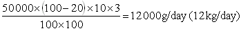 if it is assumed that all the animals originally stocked are still present. If however, there has been a 20% mortality up to the 10 g size, the correct amount of feed should be: