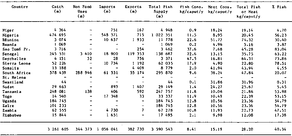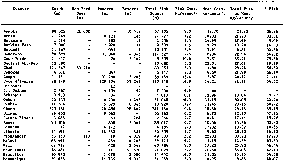Table 1: Fish Supply and Consumption of Fish and Meat (kg/caput/y) in the African Region in 1984