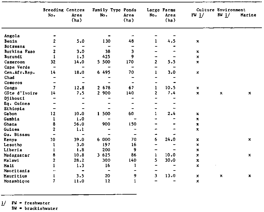 Table 2: Fish Catch and Aquaculture Production in the Africa Region South of the Sahara in 1985 (mt)