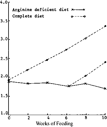 A recent innovation has been the use in test diets of proteins relatively deficient in a given essential amino acid. Thus combinations of fishmeal and zein have been used in test diets to define the requirement of rainbow trout for arginine. Diets containing different relative amounts of casein and gelatin showed that an increase in the level of protein-bound arginine from 11 to 17 g/kg resulted in a significant increase in the growth of channel catfish.